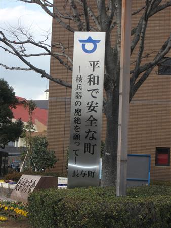 「平和で安全な町」宣言による長与町の核廃絶を願う強い意思を内外に示すため、標柱を庁舎前に設置しました。