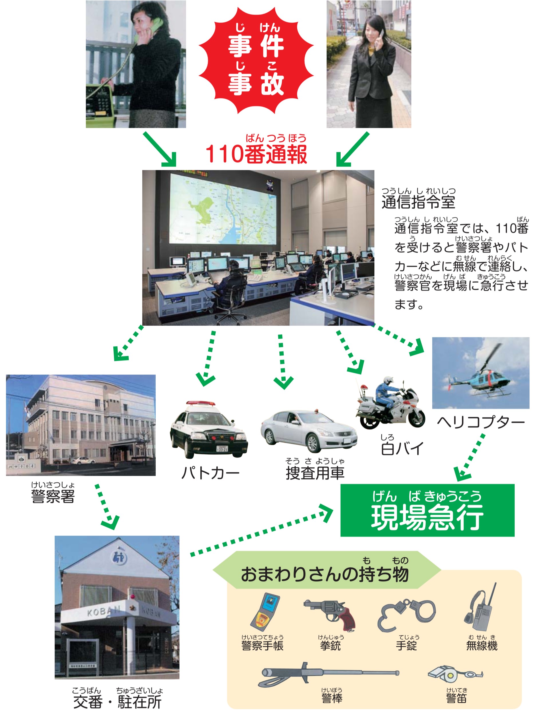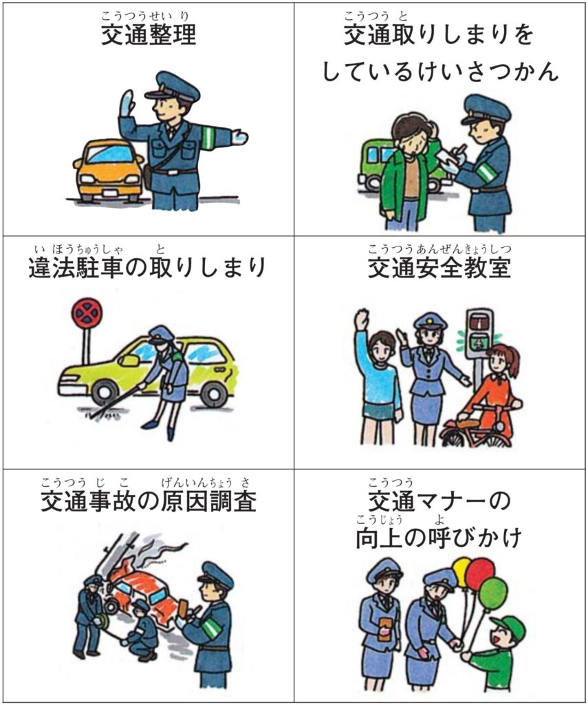 「交通事故をふせぐために,警察はいろんなことをしているね。」